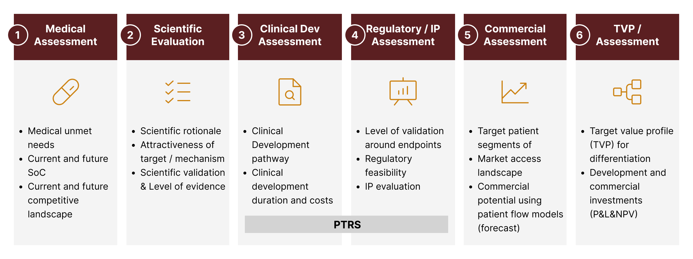 As soon as the discovery team identifies a target for a particular disease, it's critical to start understanding the potential of this target before embarking on the journey of further development. The cross-functional teams have to evaluate the opportunity to rationalize investments. The scientific opportunity must align with the commercial potential to advance a new product for development.